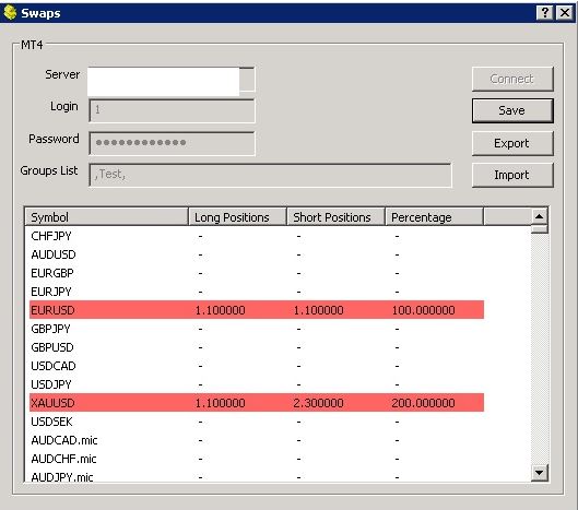 Ability to enter MetaTrader symbols swap settings via a CSV file or GUI software.